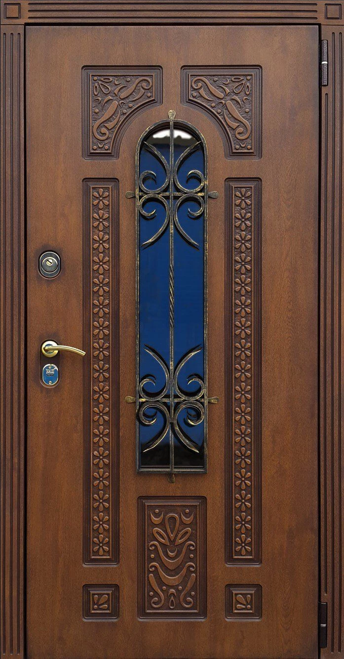 Входные двери в Гвардейске с применением декора витражом изготавливаются из стального профиля, придающего прочность конструкции, а сама витражная вставка обладает высокой взломостойкостью, поскольку для витражных композиций используется специальное стекло, обработанное особым образом. Усилить надежность витражного элемента можно с помощью использования декоративных кованных решеток.